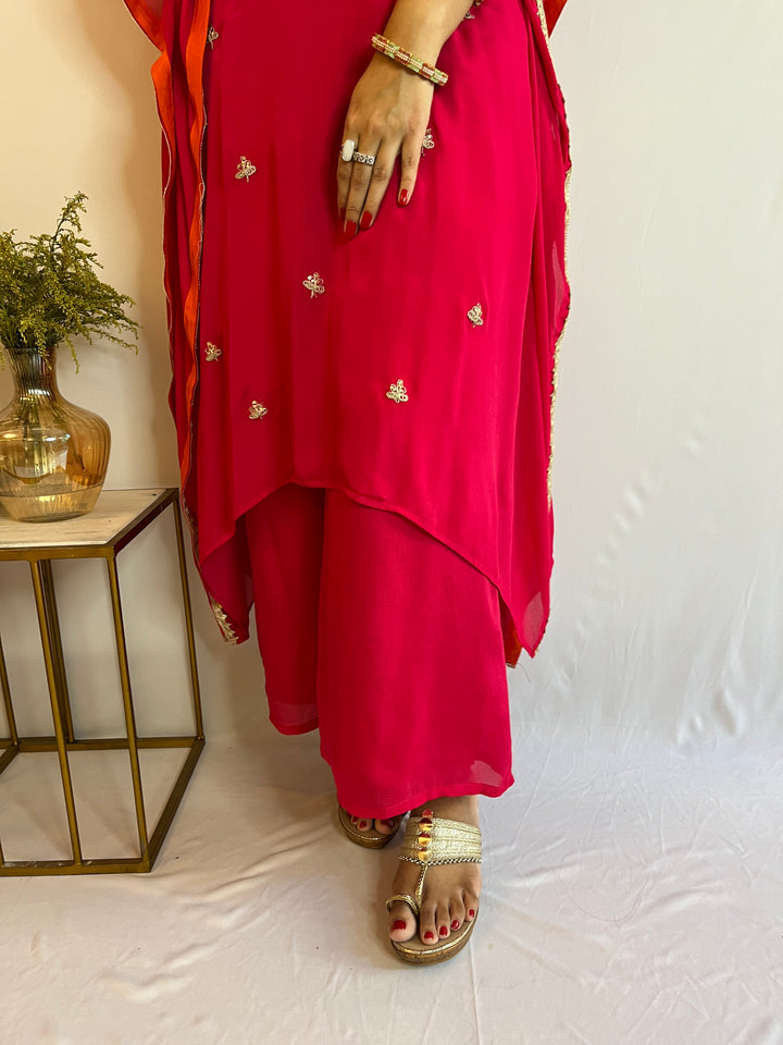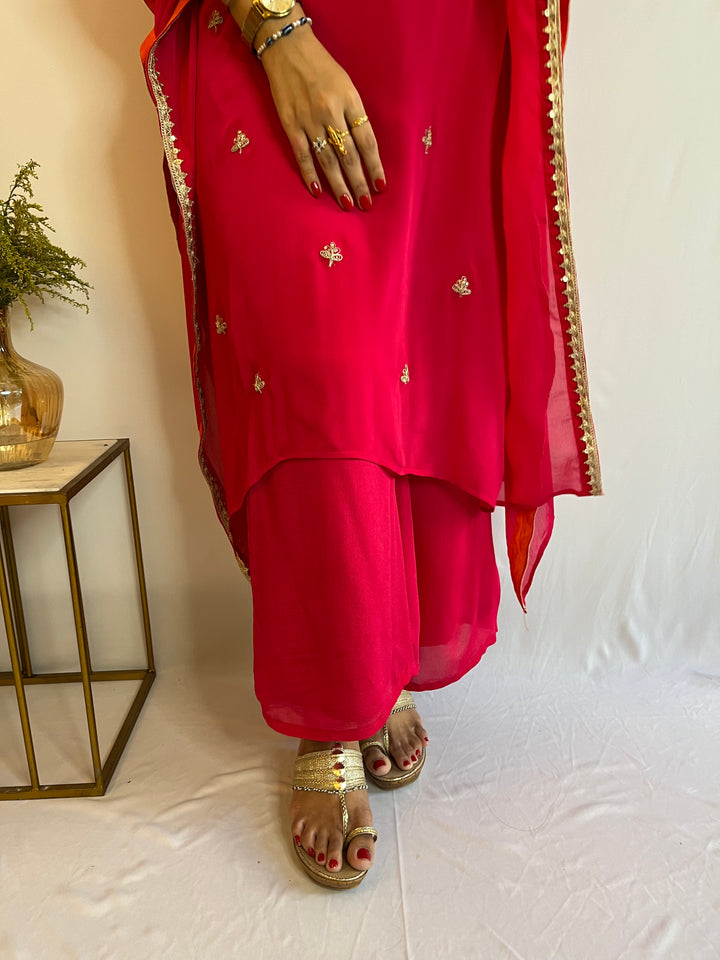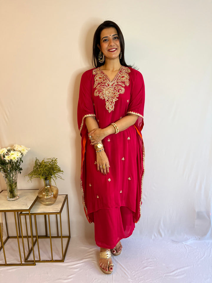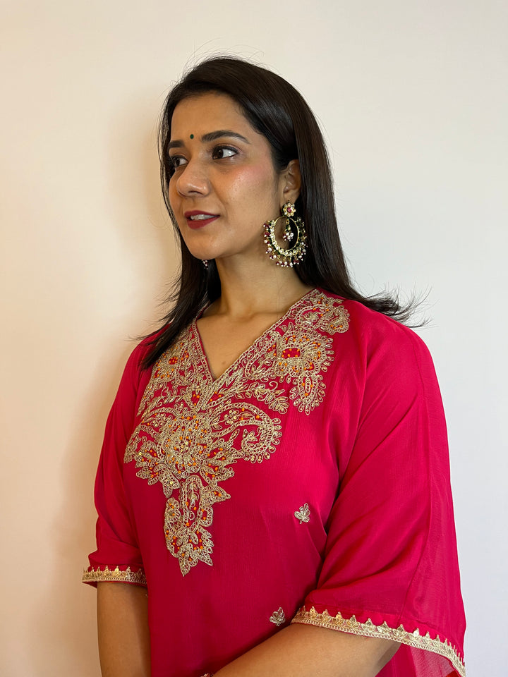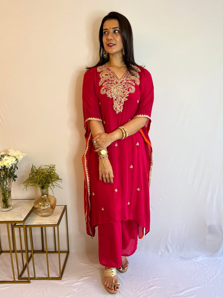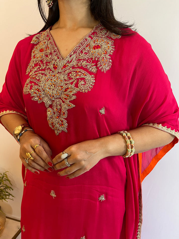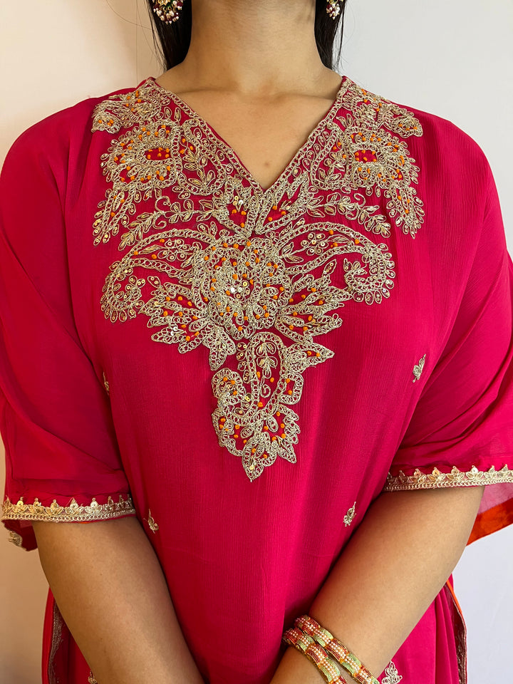 Dazzle in our Ishq Orange and Red Kaftaan, a brightly vibrant and festive piece that will add a playful touch to your wardrobe.