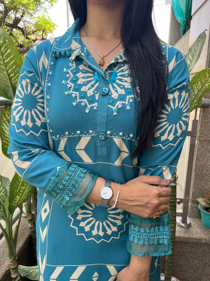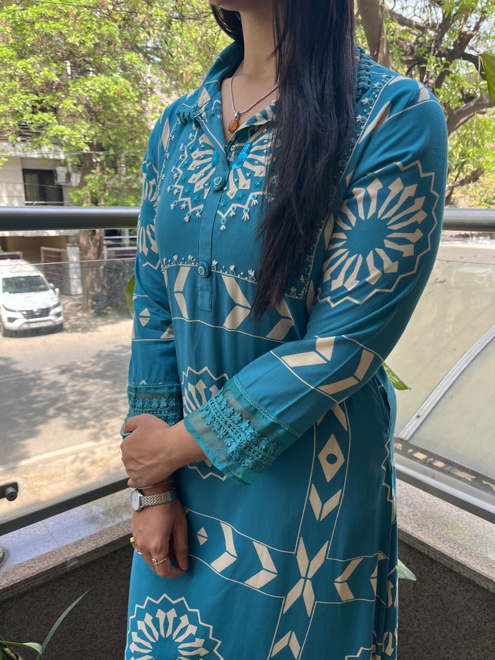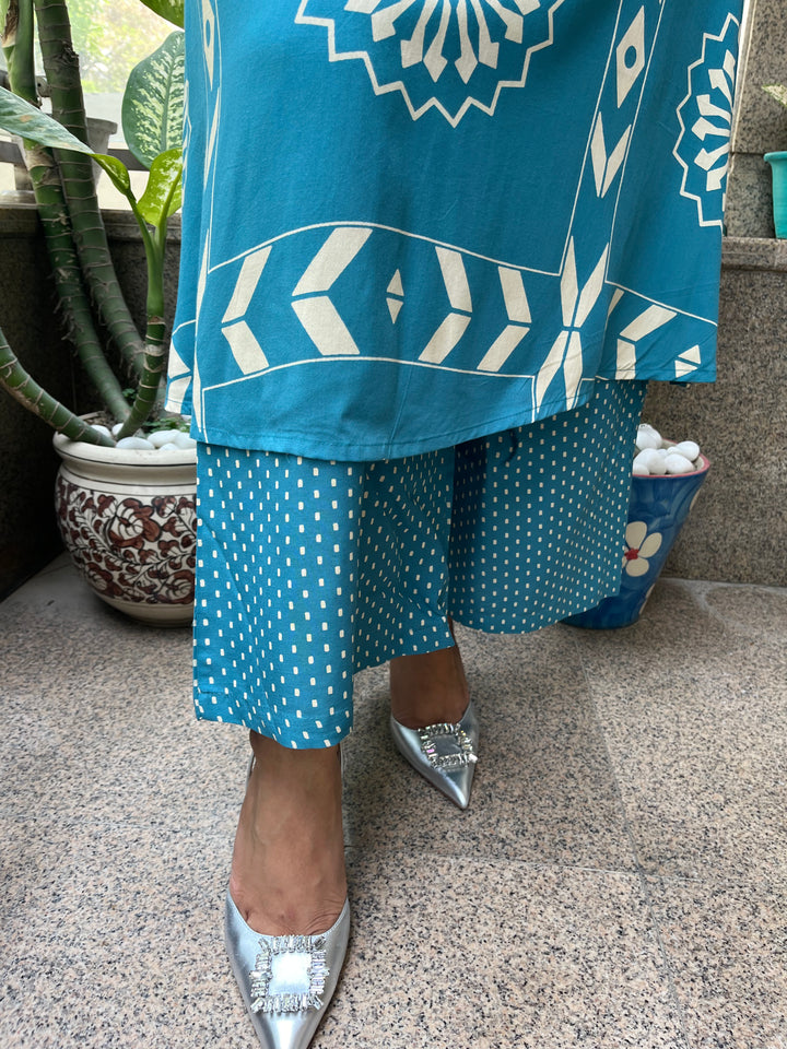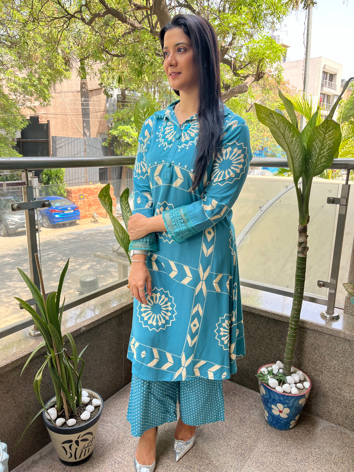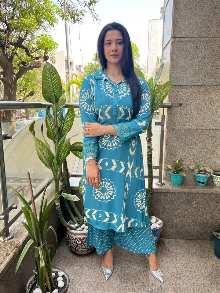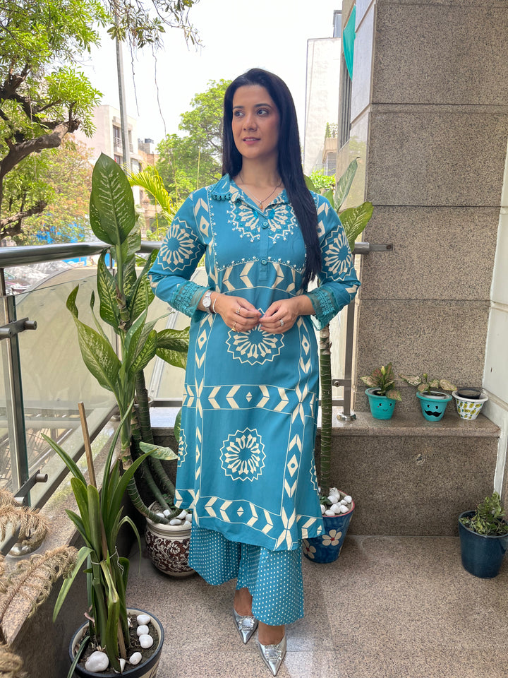 NAZAAKAT WHITE AND BLUE FULL LENGTH COORD