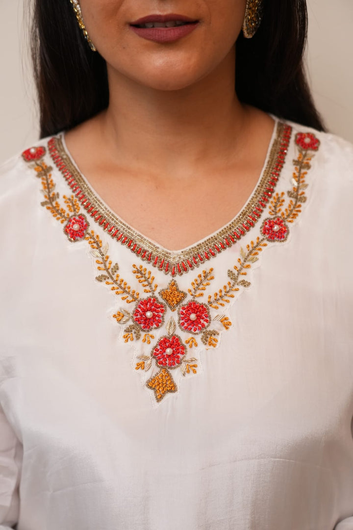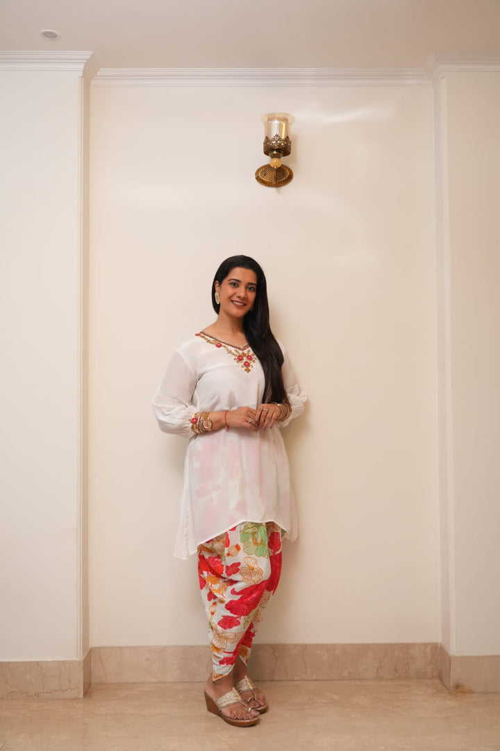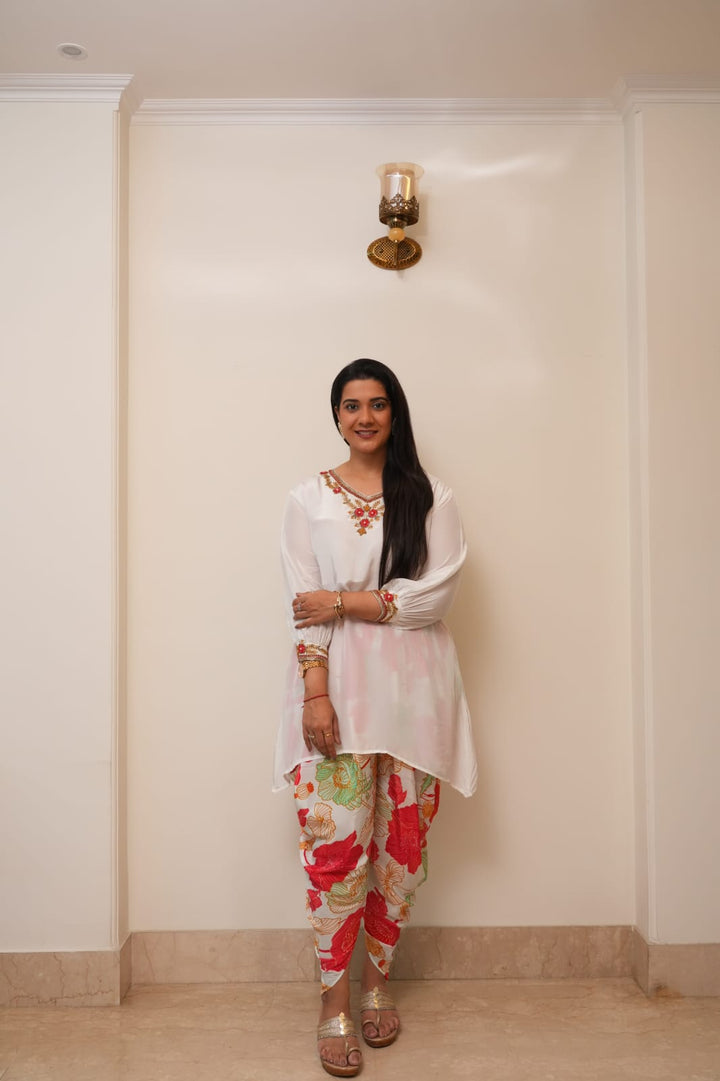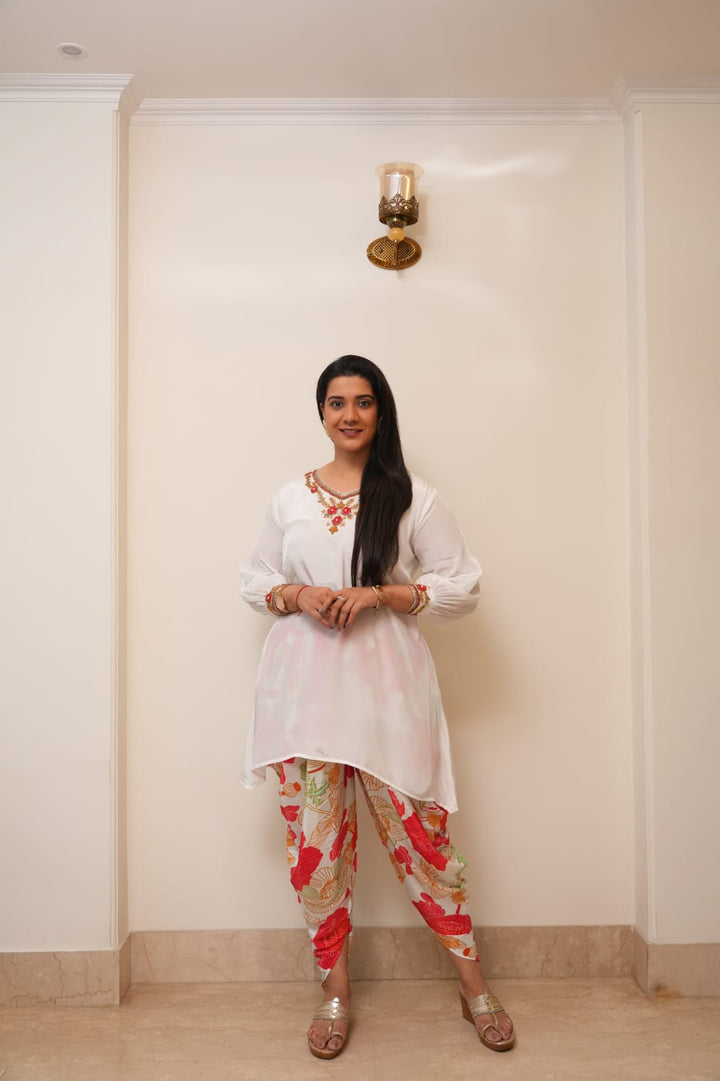 WHITE AND ORANGE DHOTI SET